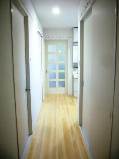 間口を廊下側に広げ、ドアを一本引戸にしました